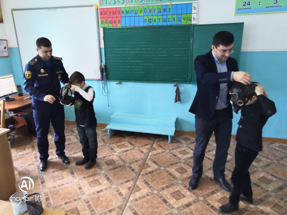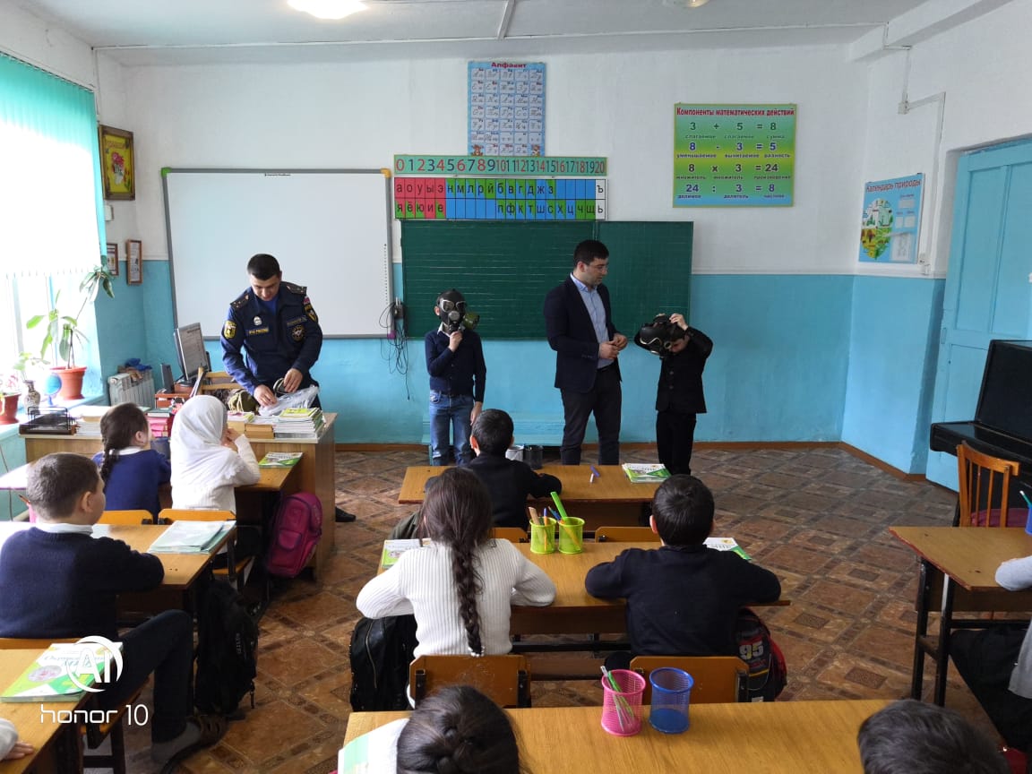 В Прогимназии №18 города Дербент провели открытый урок, в ходе которых ознакомили учащихся со средствами индивидуальной защиты