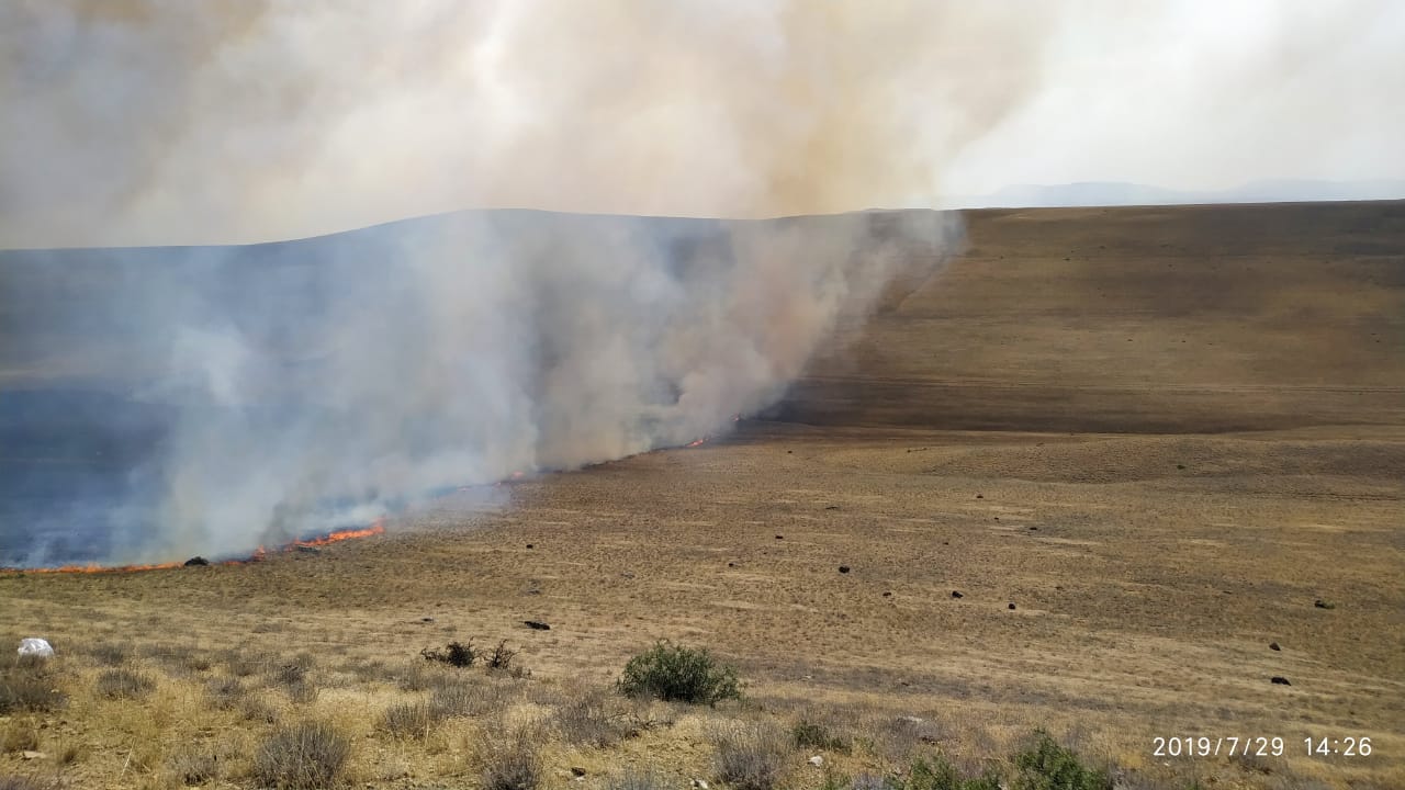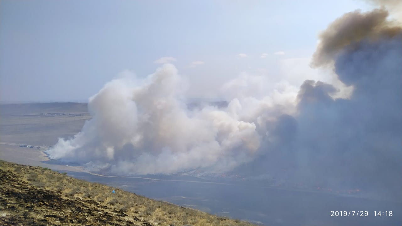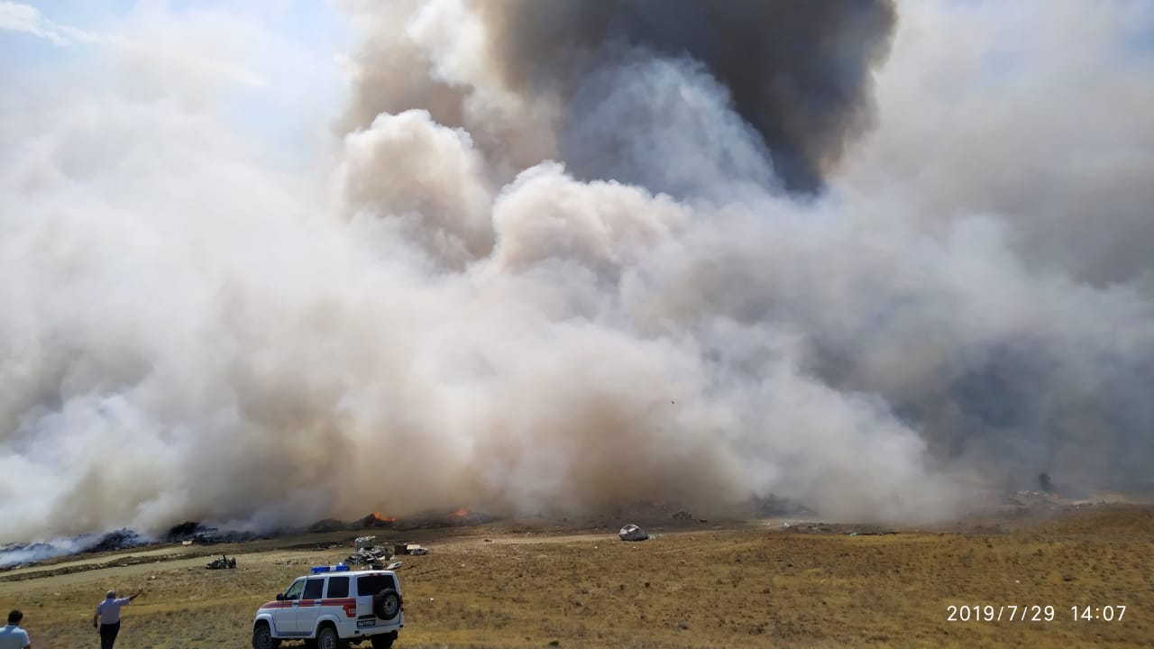 По прибытию обнаружено открытое горение бытовых отходов на территории 4-5 га. Возгорание создало угрозу жизнедеятельности населения, проживающего в четырех близлежащих населенных пунктах, а также привело к затруднению движения автотранспортных средств на автодороге республиканского значения, находящейся на расстоянии 1 км.