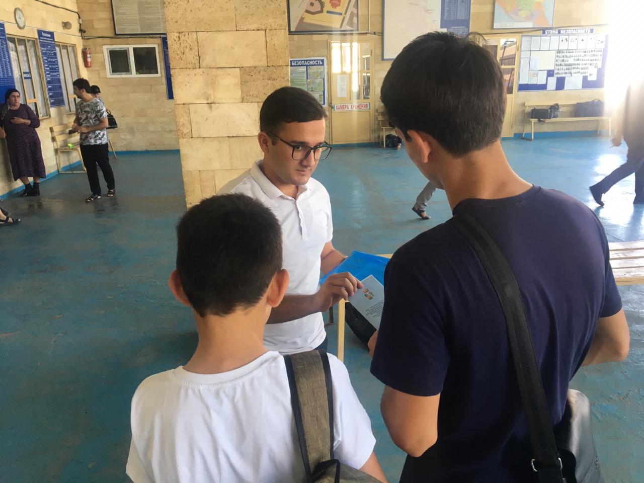 28 августа 2019 года сотрудники МКУ «Управление по делам ГО и ЧС» г. Дербент. Согласно Плана мероприятий по информированию населения, изготовили наглядную продукцию в виде буклетов о порядке действий населения по гражданской обороне и распространили в местах массового пребывания и скопления, в частности на территории Южного автовокзала, Северного автовокзала и крепости Нарын-Кала городского округа г. Дербент.
