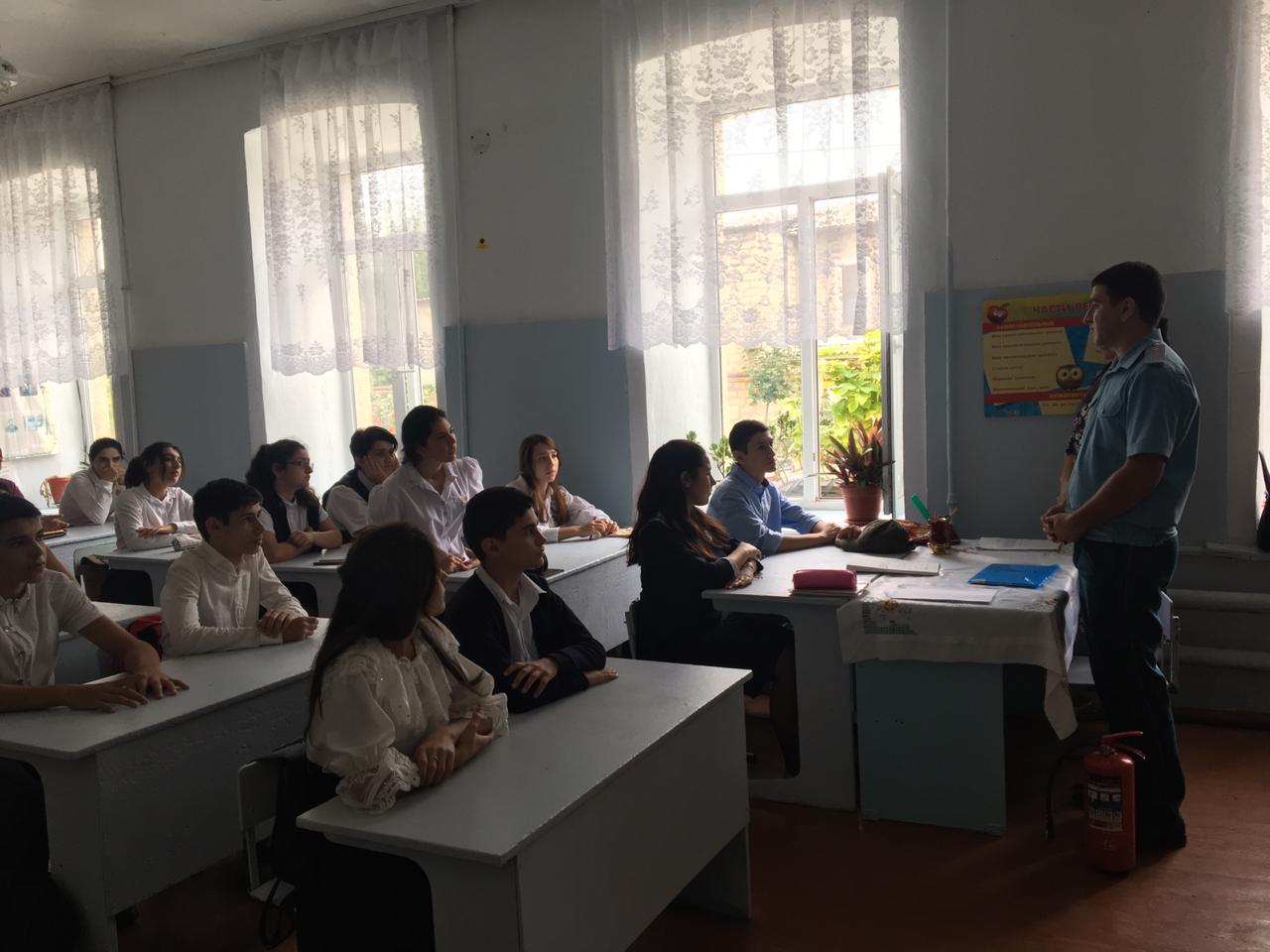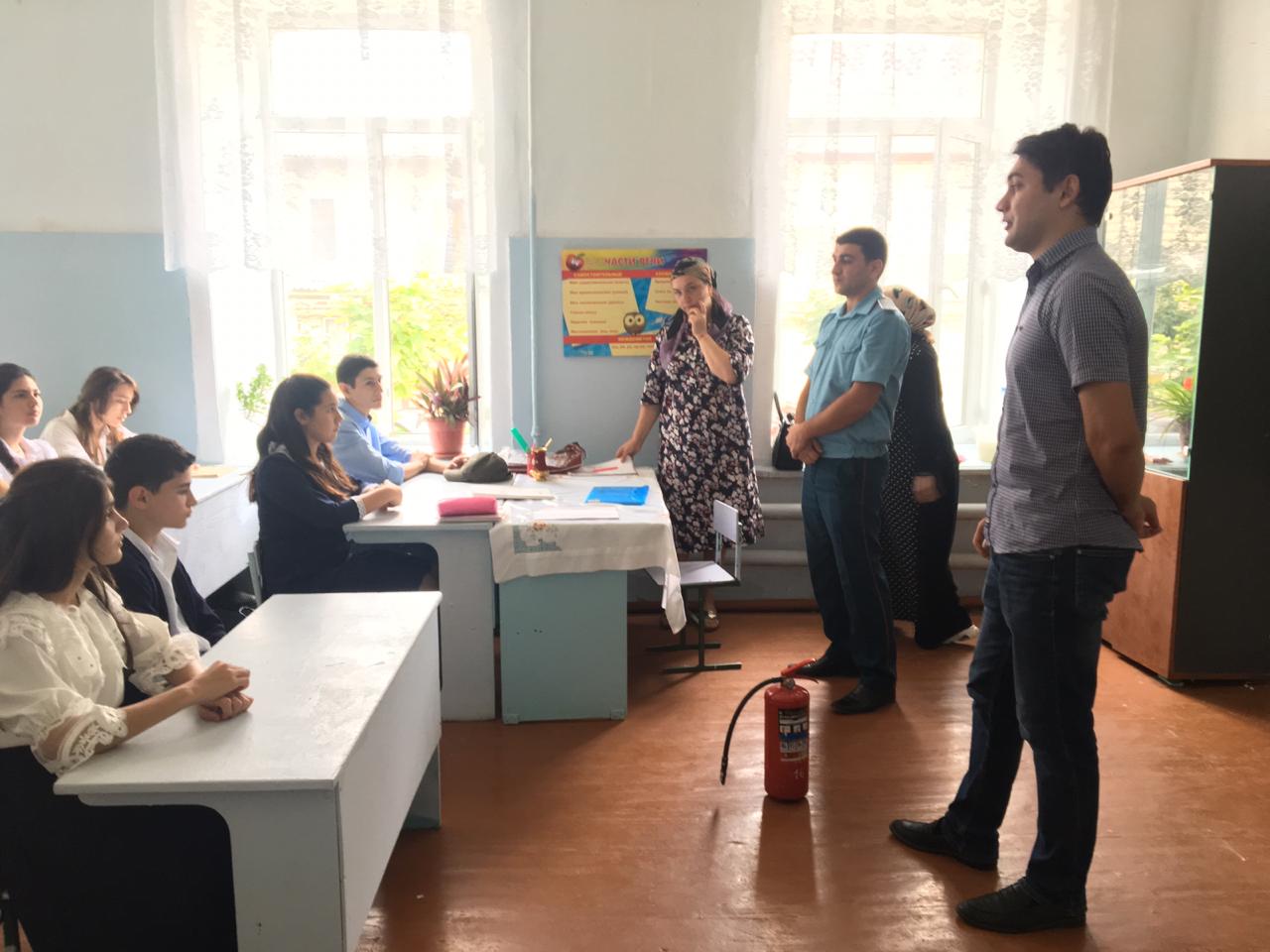 11 сентября 2019 года согласно плана основных мероприятий сотрудники МКУ «Управление по делам ГО и ЧС» г. Дербент совместно с инструктором ОНД и ПР № 7 г. Дербент провели занятие с учащимися в МБОУ СОШ №1. На занятии были рассмотрены вопросы посвященные мерам по обеспечению пожарной безопасности, правила проведения на случай наступление землетрясение, профилактические отравления угарным газом. По завершению беседы была организована раздача буклетов и памяток по соответствующей тематике.