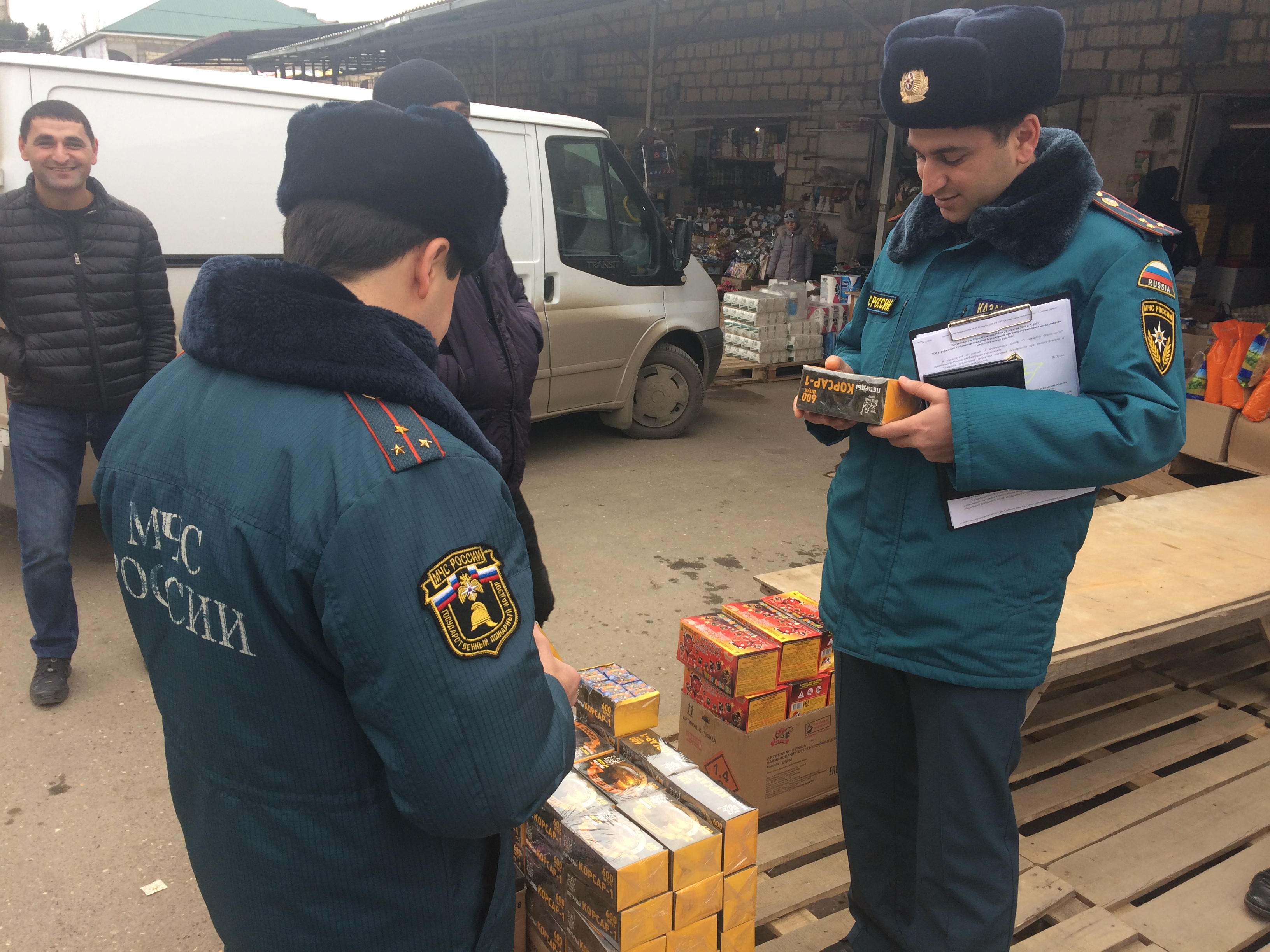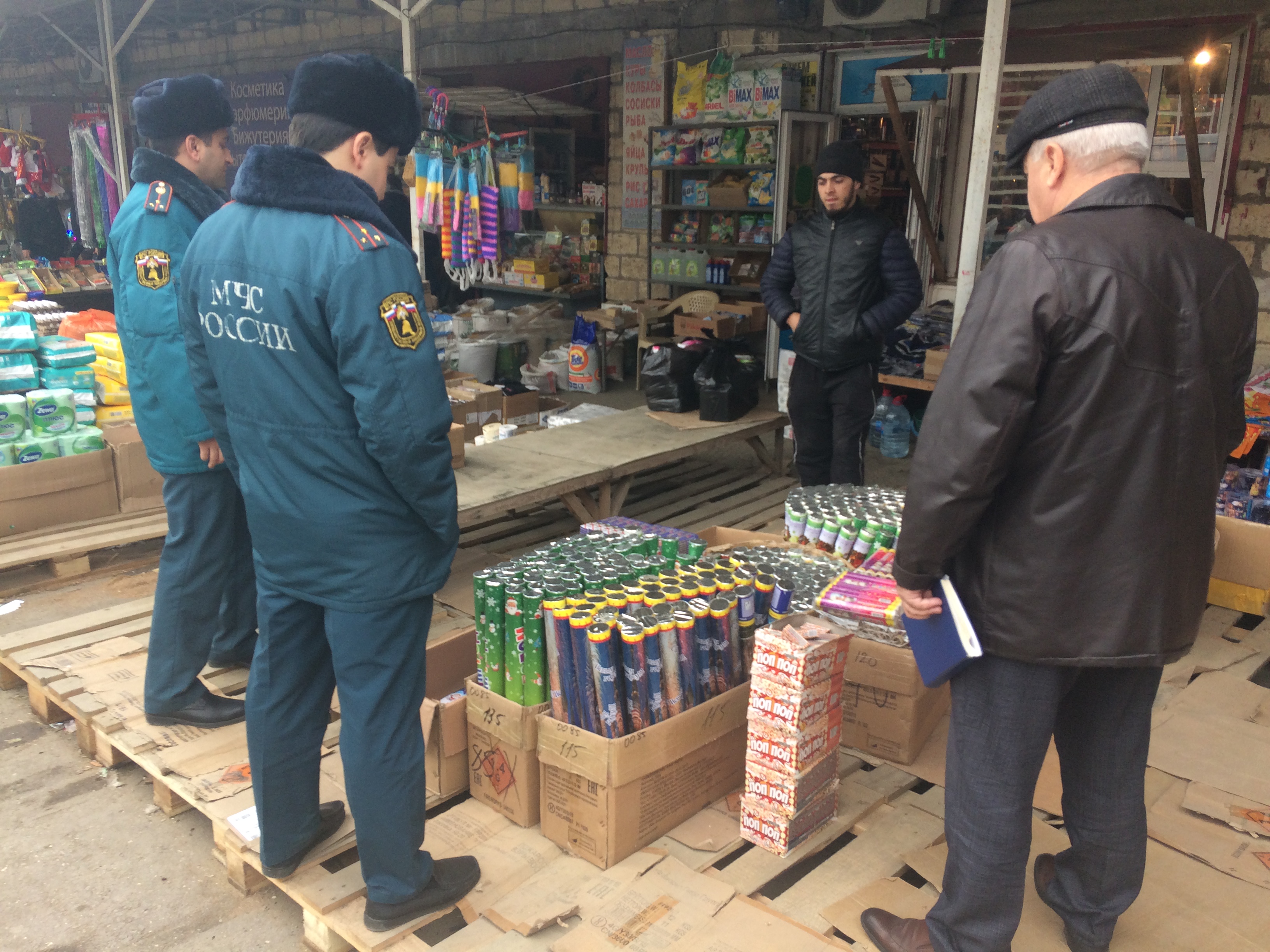 20 декабря 2019 года согласно Плана месячника «Безопасный Новый год» сотрудники МКУ «Управление по делам ГО и ЧС» г. Дербент совместно с ОНД и ПР № 7 г. Дербент и ОМВД России по г. Дербент провели профилактические рейдовые мероприятия в местах реализации пиротехнических изделий на рынке «Северный», в ходе которого были предупреждены все владельцы торговых точек о допустимости реализации только сертифицированной пиротехнической продукции совершеннолетним лицам.