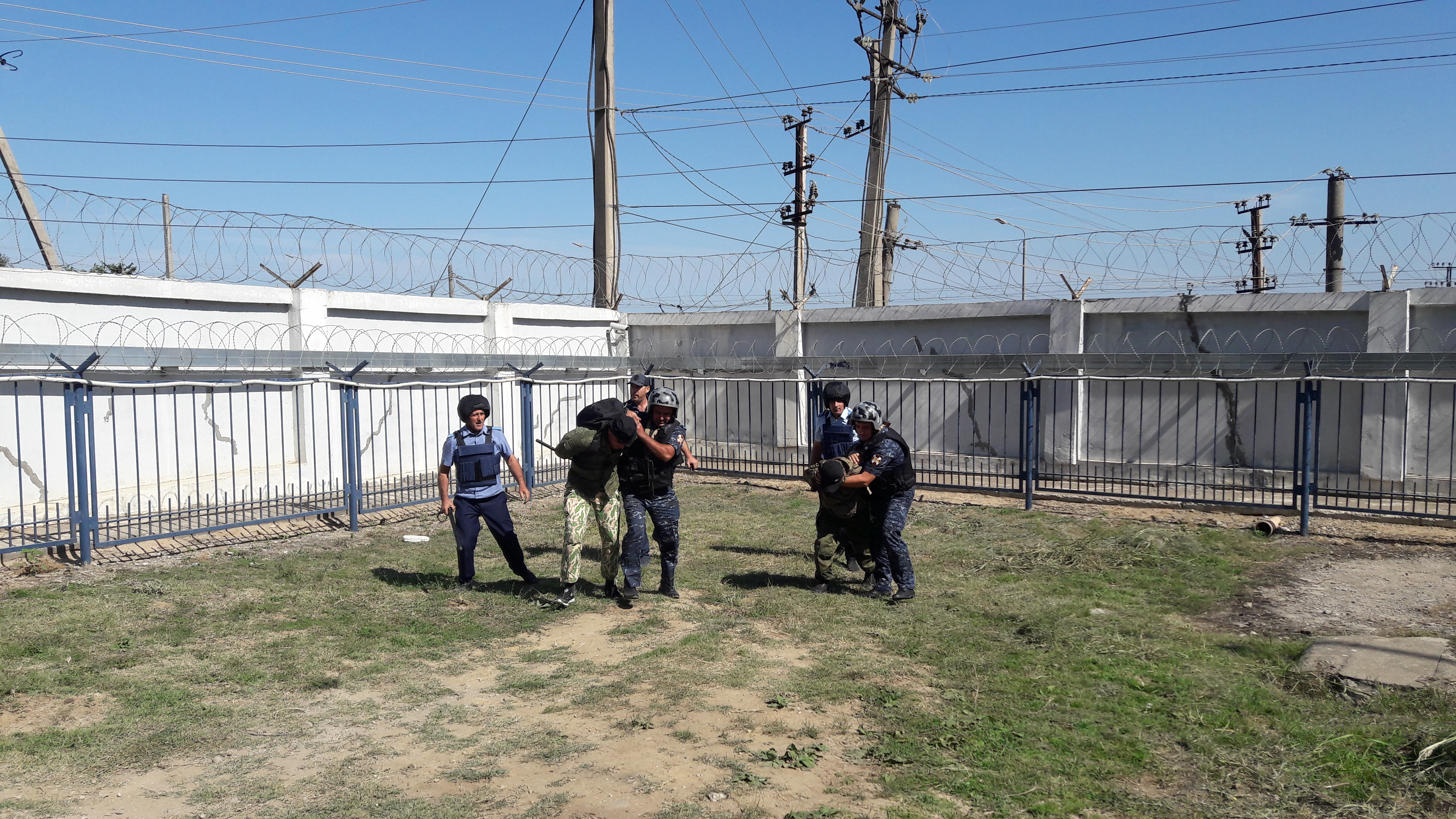 По сценарию, поступает сигнал о нарушении периметра объекта на пульт управления ведомственной охраны. Согласно своим функциональным обязанностям охрана выдвигается на участок сработки. По прибытии на место, обнаружили неизвестных лиц пытающихся преодолеть колючее ограждение и задержали их. При обыске обнаружили рюкзак со взрывчатым веществом с часовым механизмом. Затем вызвали группу быстрого реагирования (ГБР) для конвоирования. При попытке совершить побег одного из нарушителей ранили. Раненному оказали первую помощь и вызвали скорую медицинскую помощь.