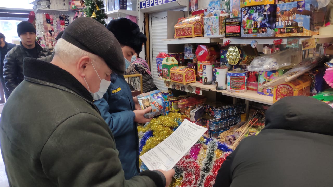 21 декабря 2020 года согласно Плана месячника «Безопасный Новый год» МКУ «Управление по делам ГО и ЧС» г. Дербент совместно с ОНД и ПР № 7 ГУ МЧС России по РД, ОМВД России по г. Дербент и управлением экономики и инвестиций администрации проведено профилактическое рейдовое мероприятие на территории ООО "Дербентский Универсальный Рынок" Дагпотребсоюза, в местах реализации пиротехнических изделий.