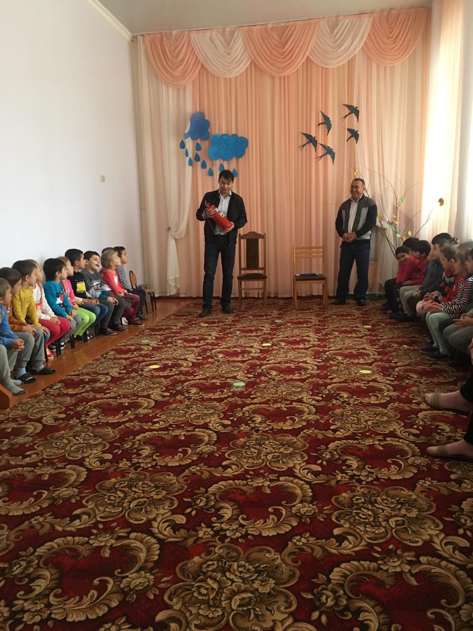 Согласно Плана мероприятий по проведение месячника гражданской обороны в 2018 на территории городского округа «город Дербент» специалистами Шихбабаевым Р.Т. и Наврузовым Н.А. МКУ «Управление по делам ГО и ЧС» в МБДОУ №1 была проведена беседа «Как вести себя в случае возникновения пожара», с сотрудниками закрепили инструктажи «Как пользоваться огнетушителем». Данное занятие выполнено в целях распространения и поддержания на должном уровне знаний по пожарной безопасности, профессиональной и психофизиологической готовности персонала для успешного выполнения действий по эвакуации в случае возникновения чрезвычайной ситуации,  предотвращению пожара в первоначальный период его развития, а также обучения порядку и правилам взаимодействия персонала объекта с подразделениями государственной службы (ГПС).