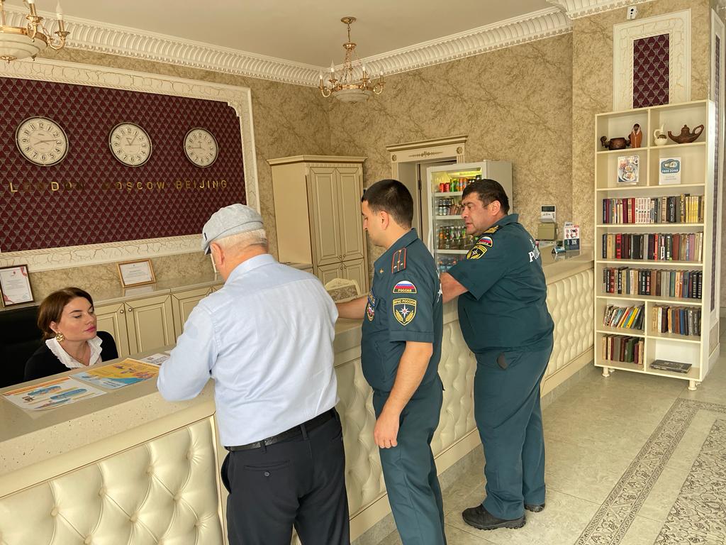 07.06.2023г сотрудники МКУ «Управление по делам ГО и ЧС» совместно с представителями ДИУ ФКУ «ГИМС ГУ МЧС РД», ОНД и ПР № 7 УНД ГУ МЧС России по РД провели профилактические мероприятия по обеспечению пожарной безопасности в гостиничных комплексах, расположенных вдоль береговой линии в черте г. Дербент (с представителями коллективных средств размещения- КСР). В ходе мероприятий сотрудники гостиничных комплексов были ознакомлены с методическим рекомендациями по обеспечению безопасности на водных объектах, также по профилактике детского травматизма во время летнего отдыха детей с ихними законными представителями (родители, опекуны) в данных гостиничных комплексах, были проведены инструктажи с ответственными лицами данных гостиниц, были розданы памятки (буклеты) по соответствующей тематике. Целью проведения данных мероприятий является - принятие мер по обеспечению безопасности на водных объектах и в местах массового пребывания людей на территории г. Дербент.