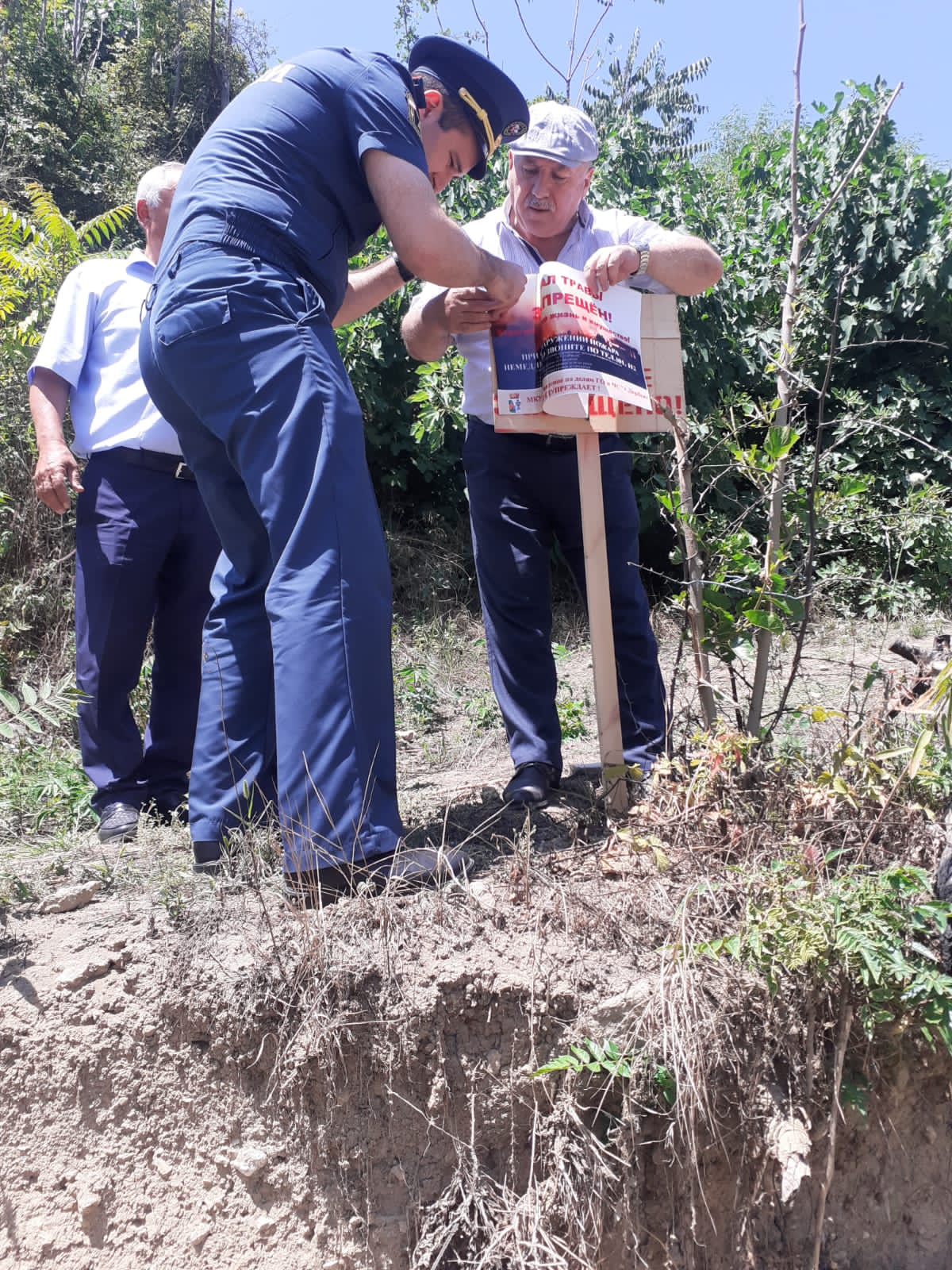 03.07.2023г. в рамках исполнения решений заседания Комиссии по предупреждению и ликвидации чрезвычайных ситуаций и обеспечению пожарной безопасности городского округа «город Дербент» от 29.05.2023г. № 3 МКУ «Управление по делам ГО и ЧС» г. Дербент, совместно с представителями ОНД и ПР № 7 УНД ГУ МЧС России по РД, ГКУ РД «Дербентское лесничество» в целях предупреждения и недопущения случаев разведения костров и профилактики пожарной безопасности на территории с/т «Горка» и прилегающих территорий к цитадели «Нарын-Кала» г. Дербент установлены предупреждающие знаки: «Пал сухой травы запрещен».