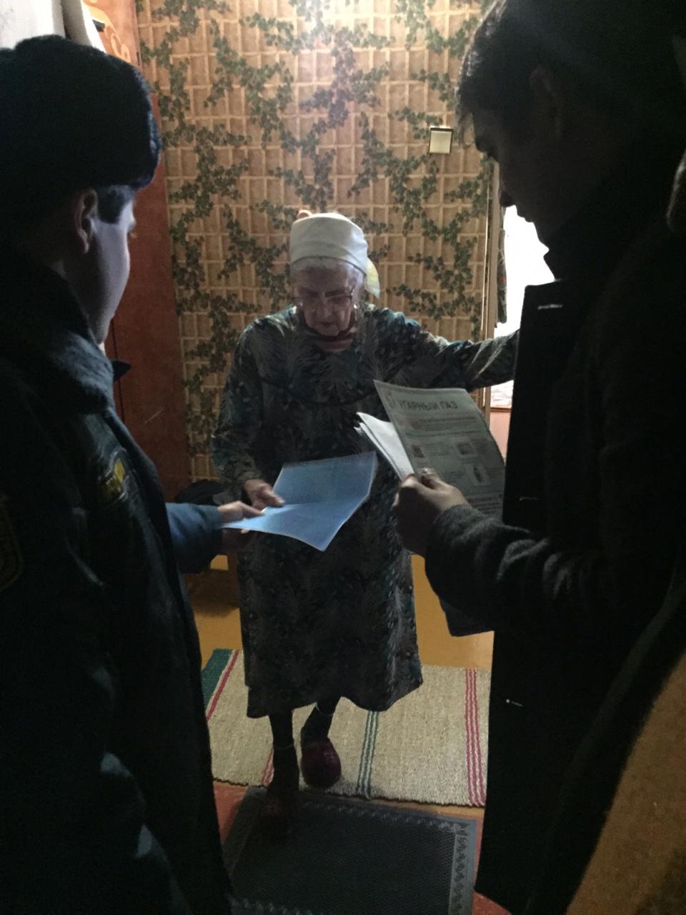 Рабочая группа провела обходы мест проживания граждан пожилого возраста, инвалидов, многодетных семей. С данными категориями граждан проводилась беседа с доведением информации о необходимости соблюдения правил пожарной безопасности в быту при использовании электронагревательных и отопительных приборов, очистке дымовых и вентиляционных каналов, правила поведения при возникновении чрезвычайных ситуаций. Также по ходу беседы гражданам были вручены памятки об угрозе угарного газа и предупреждение чрезвычайных ситуаций при небрежном пользовании электроприборами и газовым оборудованием.