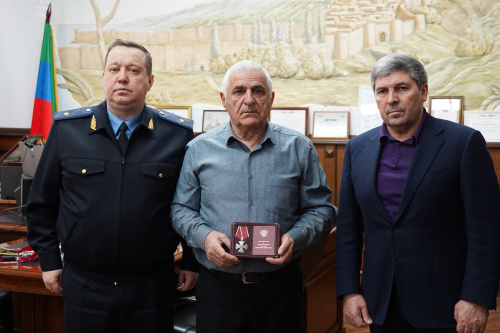 Сегодня, 17 января, мэр Дербента Ахмед Кулиев и начальник службы Пограничного управления ФСБ России по Республике Дагестан в г.Дербенте генерал-майор Владимир Жуковский вручили орден Мужества посмертно родным пограничника, участника специальной военной операции Асланова Ризвана Акифовича.