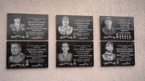 Сегодня в школе №21 г. Дербента прошло открытие мемориальных досок и парт погибшим героям в зоне специальной военной операции на Украине: Карурову Муслиму Гасановичу, Бабаеву Рагиму Фазиловичу, Агагулиеву Данияру Агагюльевичу и Рамазанову Ахмеду Магомедшафиевичу.